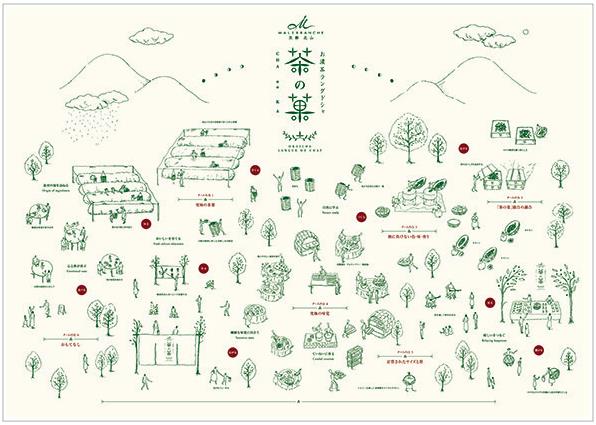 二楼的展厅,有一些有趣的设计等待着观看者发现。譬如,三木健展示了一个为京都一家西点店所作的商品开发与包装概念案例。正如好的设计令人看见了“真正的丰富是什么”,好的西点设计也能帮助人实现“如果有这样的蛋糕店就最棒了”的梦想。基于“商品是的孩子,没有就没有设计”的观点,三木健的一张“茶点”诠释图几乎覆盖了从食材生长到店铺设计的每一个环节,而这张图恰恰与之前的“Apple”概念诠释图几乎完美对应,让人理解了概念到应用的转换。更为可贵的是,设计师还常常“想象人们使用时的喜悦感”,这也是好的设计在色彩之外透出淡而隽永的人情味之所在。