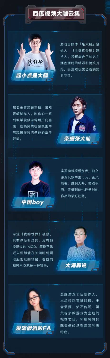 随着游戏行业的发展,越来越多的游戏视频创作者正在涌现并获得关注。在西瓜视频公布的这份报告中,就列举了多位知名的游戏视频制作人。如出品了《主播真会玩》等知名节目的是大腿创始人「起小点」,出品过英雄联盟、王者荣耀、炉石传说、等多款游戏视频节目的金牌制作人「爱喝假酒的FA」,风格诙谐有趣的知名王者荣耀主播「荣耀张大仙」,画风清奇、表情到位的游戏玩家「中国boy」,以及专注《我的世界》游戏视频的「大海解说」。这些特点鲜明的创作者,均在西瓜视频上深受欢迎。
